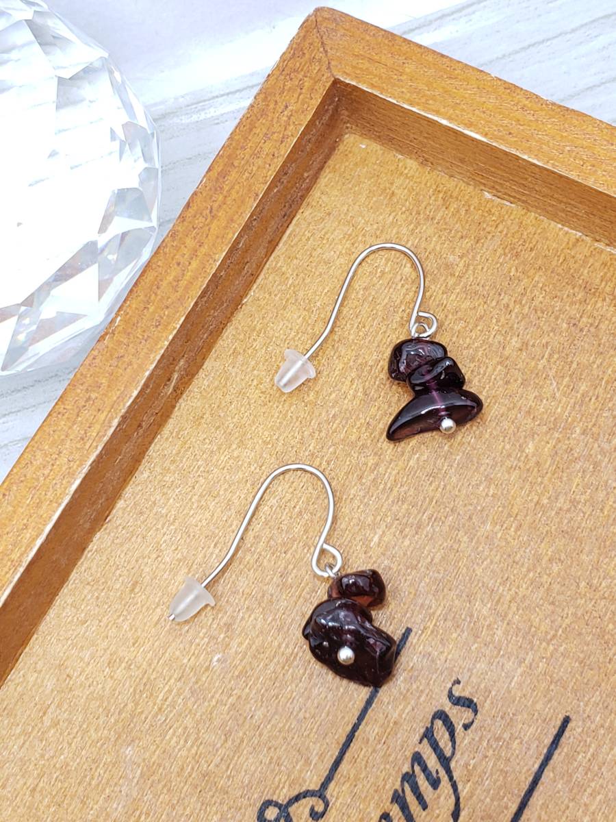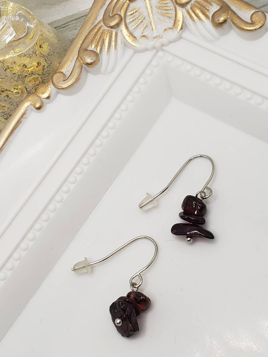 ★ハンドメイド イヤリングorピアス A614 樹脂フック・バネ(クリップ)式イヤリング金具など変更無料 ガーネット さざれ★