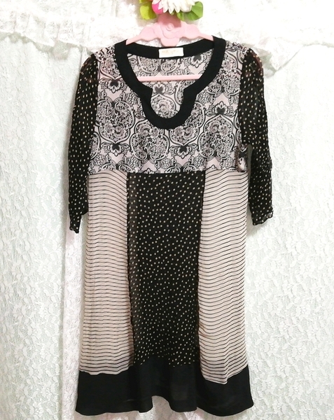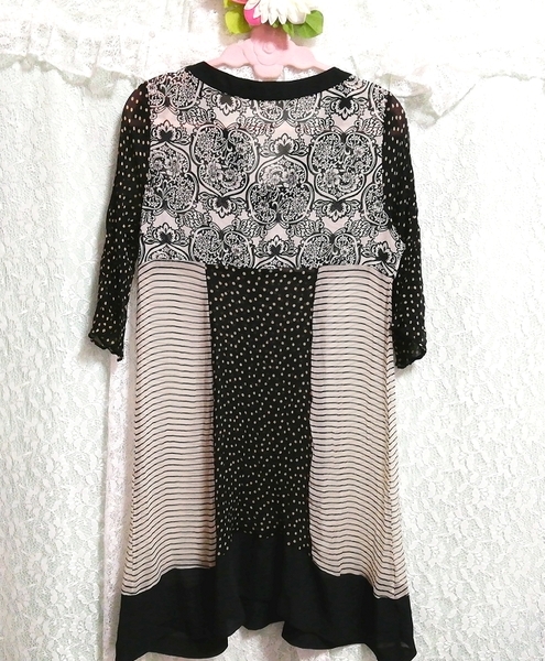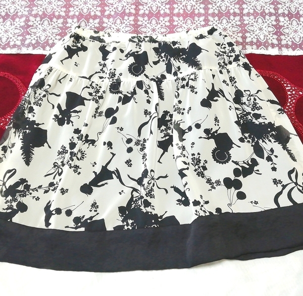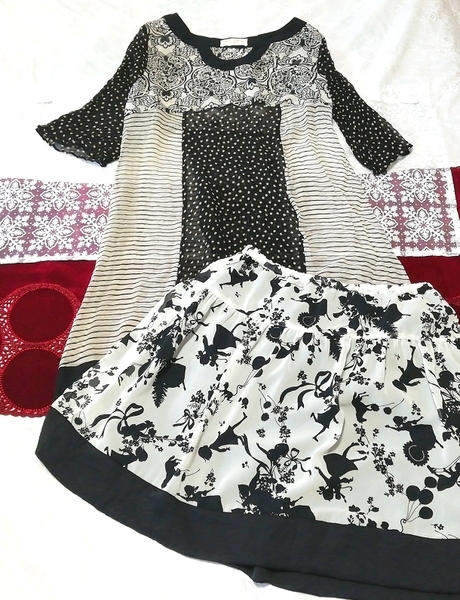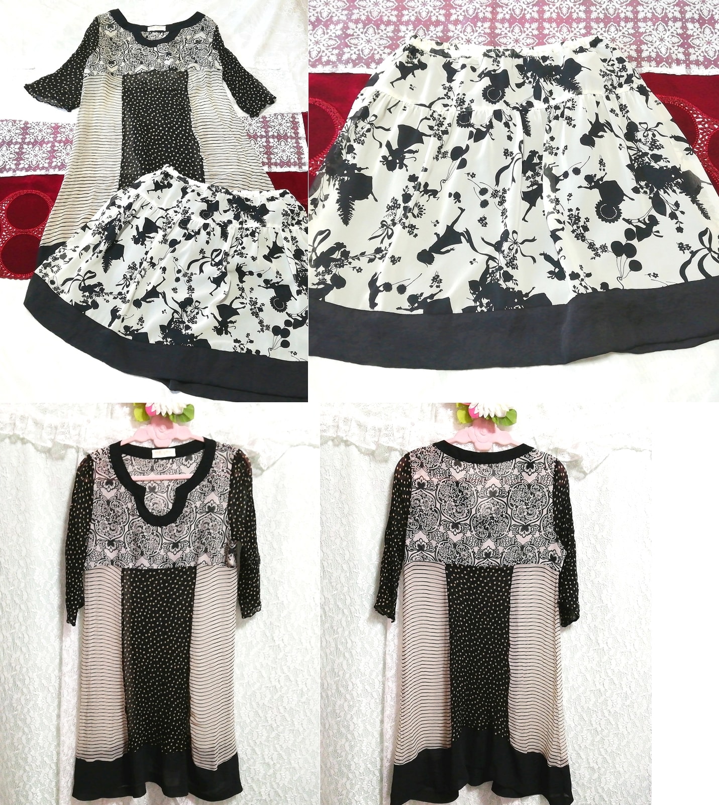 白黒シフォンシースルーチュニック ネグリジェ 切り絵影絵ミニスカート 2P Black white chiffon tunic negligee chiffon mini skirt