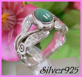 シルバー925銀の天然石ターコイズ付 透かしリーフ リング/12号.14号.15号より