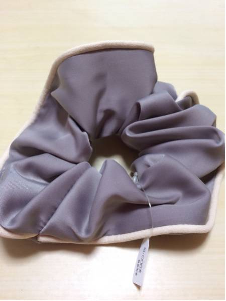 グレー色のサテン系生地にアイボリー色のパイピングが施されています。