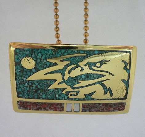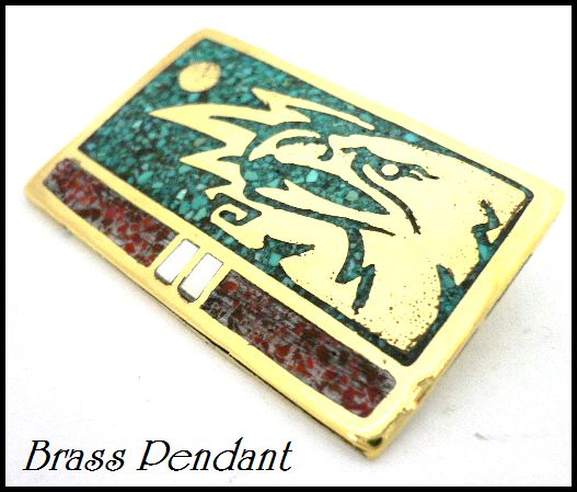 真鍮製Brass天然石ターコイズ インレイ イーグル プレート ブラス ペンダント