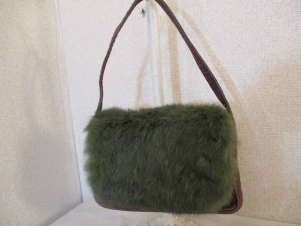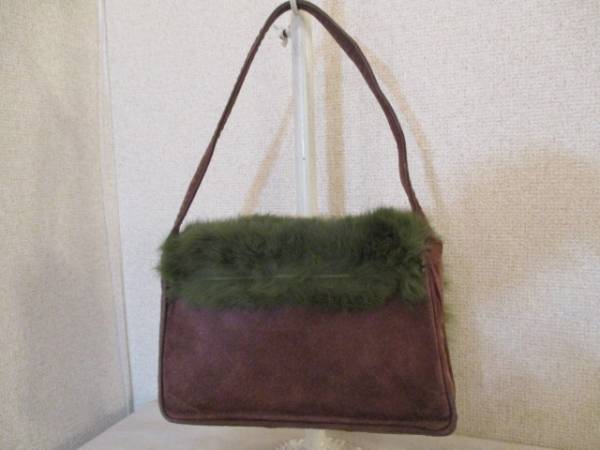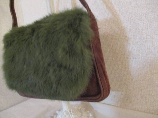 商品名 | MKKLEIN+茶スエード&緑ラビットファーハンドバッグUSED121516 |