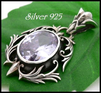 シルバー925銀のジルコニア付アラベスク ペンダントa-silver/ラベンダー
