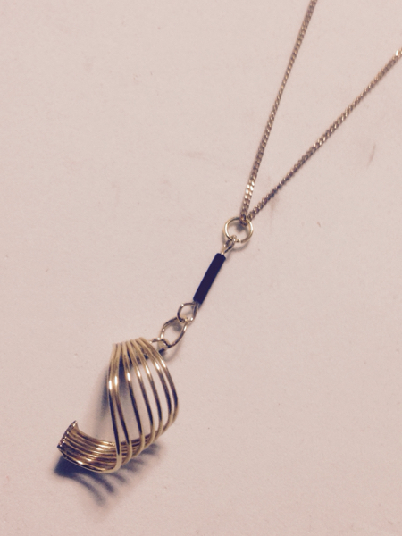 金工芸のデザイン、ペンダントネックレスです、トップのサイズは25×15ミリ、チェーンの長さは43センチです