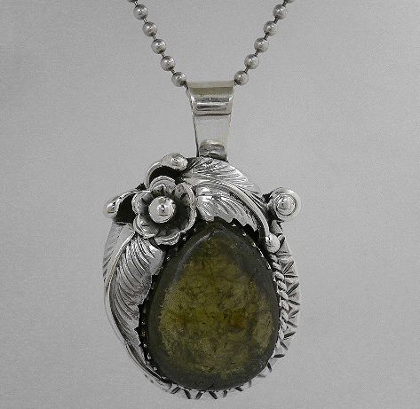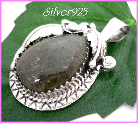 シルバー925銀の天然石トルマリン ネイティブ リーフ ペンダント