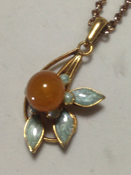 琥珀のワンポイント、デザインペンダントネックレスですトップのサイズは28×17ミリ、チェーンの長さは41センチです