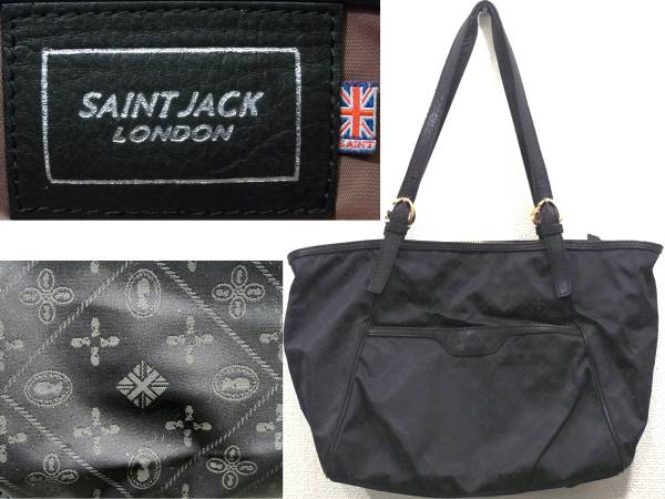 ★★★★即決価格でご落札は送料無料★★★★ SAINT JACK LONDON ショルダーバッグ 黒 セイント ジャック ロンドン ナイロン/総柄 2WAY ブラック オープントート ハンドバッグ 送料920円~ | ||||||||||||||||||||||||