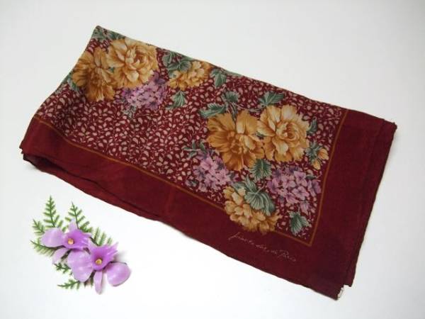 (^_^)良品/ブランド物/スカーフ/Pasris/シルク/絹/花柄/紫/茶色/P1