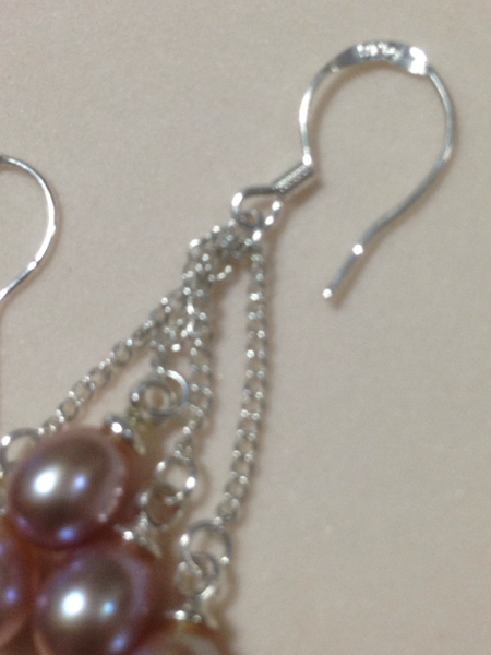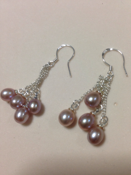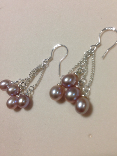 ピンクパールとシルバーの可愛いピアスイヤリングです。パールの一粒のサイズは8×6ミリです