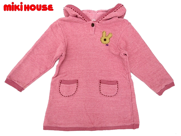 KO299★miki HOUSE★春秋冬スウェットフード長袖ワンピース 110