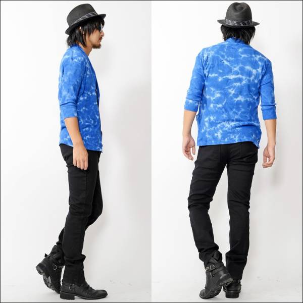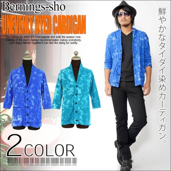 絞り染め技法により大胆なムラ感を表現したニット素材のショールカラーカーディガン!