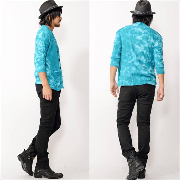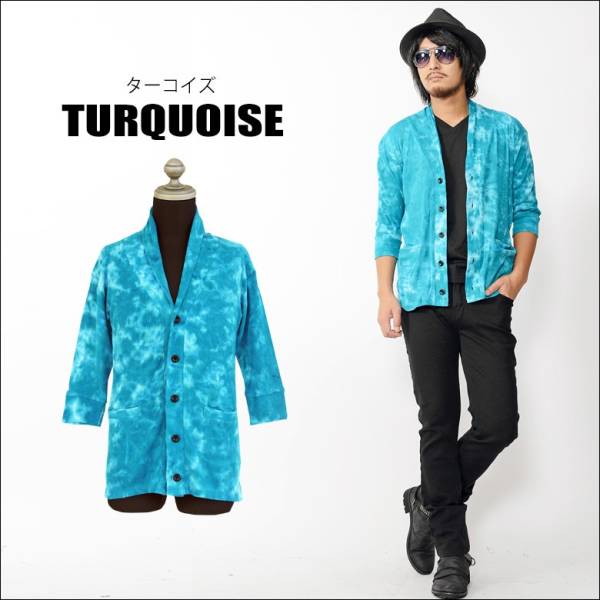 絞り染め技法により大胆なムラ感を表現したニット素材のショールカラーカーディガン!