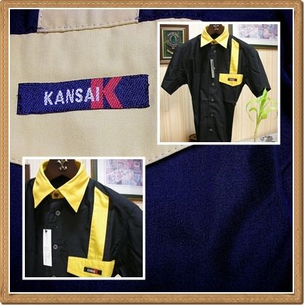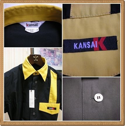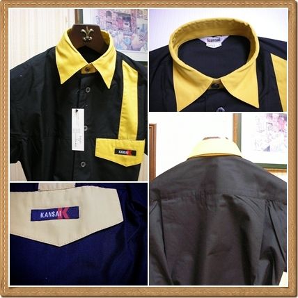 バーゲン市★寛斎 黒 黄色ポップクレリック 切替半袖 シャツ SS