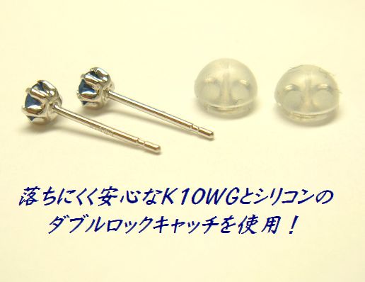 K10 ブルーサファイア 3mm ラウンド ピアス WG YG 選べるゴールド ジュエリー サブピアス セカンドピアス 9月誕生石 天然石 箱付き