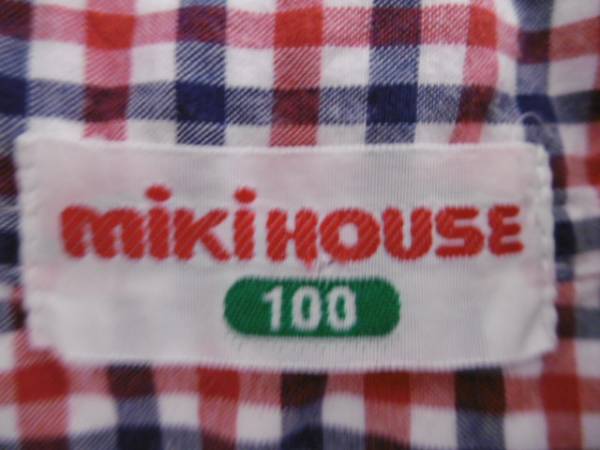 ё ミキハウス ё チェック柄半袖シャツ ■100cm■赤紺 | |||
