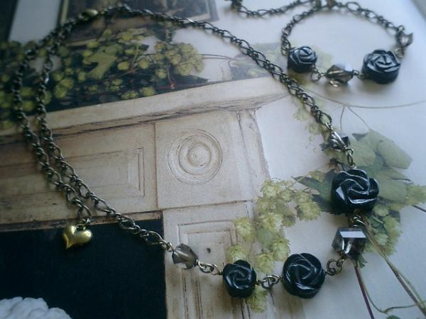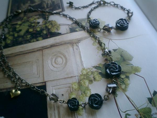 仏蘭西映画みたいに!オニキスの薔薇とスモーキークォーツのネックレスとブレスレットです♪お揃いで着けて頂きたいのでセットです♪ネックレスは14ミリ、12ミリ、10ミリの両面薔薇と10ミリ、8ミリのスモーキークォーツのペンタゴンです♪アンティークチェーンを合わせてシックです♪長さは全長56センチ位で調節自由です♪ブレスレットは14ミリ、12ミリのオニキスの両面薔薇と10ミリ、8ミリのスモーキークォーツのペンタゴンです♪長さは全長22センチ位で調節自由です♪色を抑えて大人っぽい表情です♪仏蘭西映画をイメージして作りました♪シンプルで飽きのこないいつまでも着けられるデザインを考えて作りました!ハンドメイドをご理解頂いてノークレーム、ノーリターンでお願いします