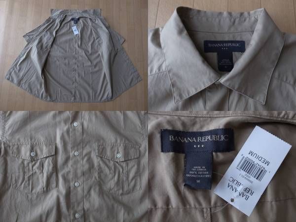 Banana Republic 半袖 サファリ シャツ Mベージュ系 カーキ系 バナナリパブリック シャツ ファッション アフリカ 探検 アウトドア キャンプ