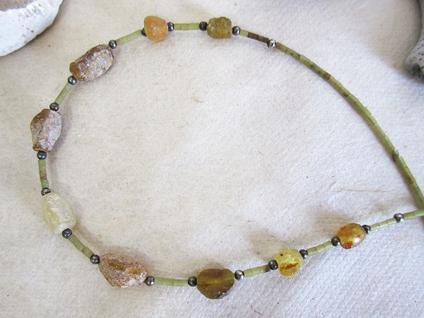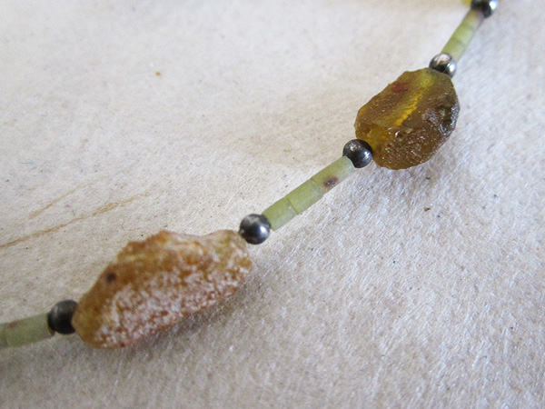 翡翠ビーズに1700~2000年前のアフガニスタン・古代ローマンガラスを組み込んだネックレスです。