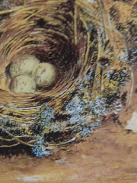 ヴィンセント・クレア、花籠と鳥の巣、希少画集画より、新品高級額装付