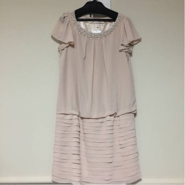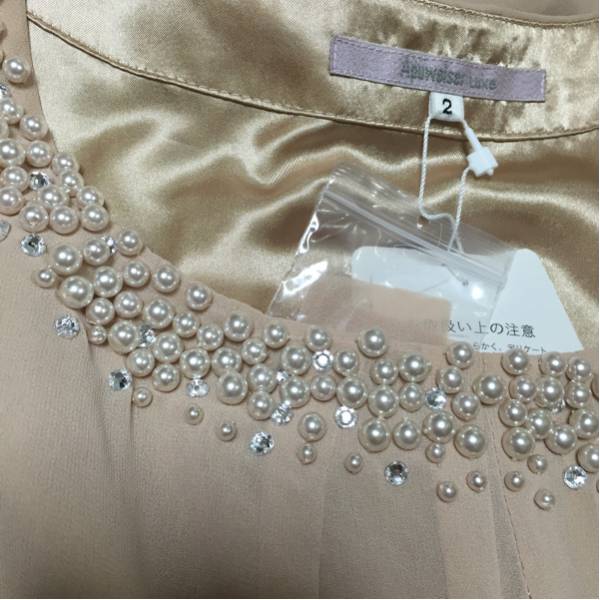 透け感のあるソフトなファブリックで仕立てた、フェミニンムード満点のワンピース。キラキラと輝きを放つストーン&ビーズが、ネックラインをエレガントに飾ります♪