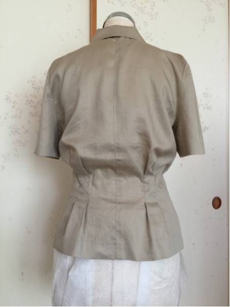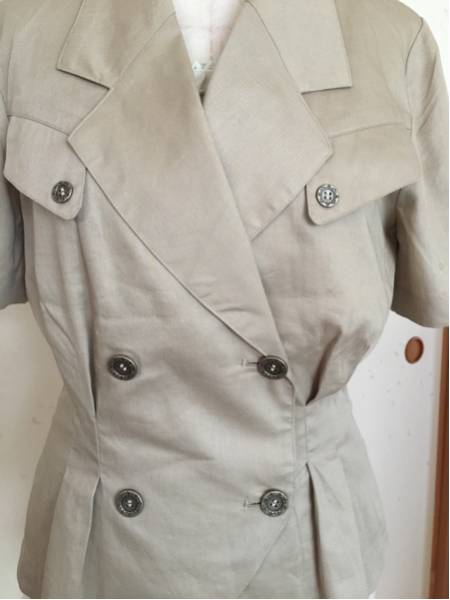 ベージュのサハリー調ですが、ウエストを絞って女性らしいシルエットになっています。