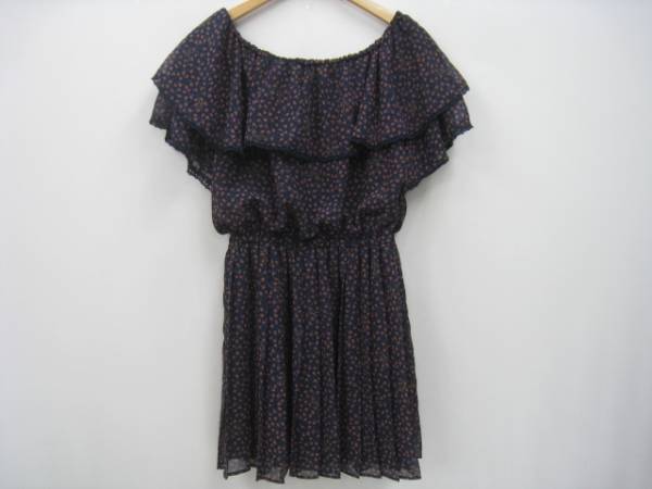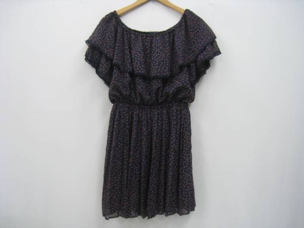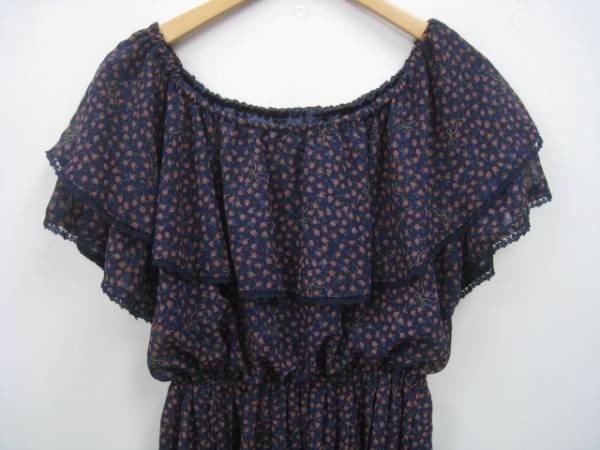 ■ブランド・商品名:アースミュージック&エコロジー 小花柄 フリル ワンピース 紺