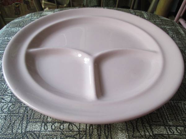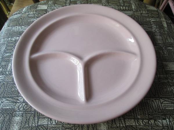 ★ アメリカで買い付けました1940~50年代にアメリカンダイナーで実際に使用されていたレストランウェアです。 大変珍しいものです。レストランウェアの中でもピンク色のスリーコンパーメントで非常に貴重なアイテムです。 実物はずっしりと重くそしてぽってりとした作りです(磁器)。 少々ぶつかっただけでは割れない強さがあります。 裏にはすべてTEPCO USA CHINAの刻印が入ってます。 欠けやひびなどなく程度は良好で普段使いには問題ありません。 ただし使用による小傷や製造時と思われる 傷などはありますが、それもアンティークの風合いかと思います。 サイズは直径約24cm、高さ約2,7cmです。写真より実際のほうがもう少しピンク色かと思います。 何枚か在庫がありますので