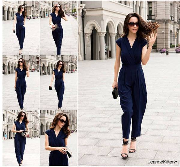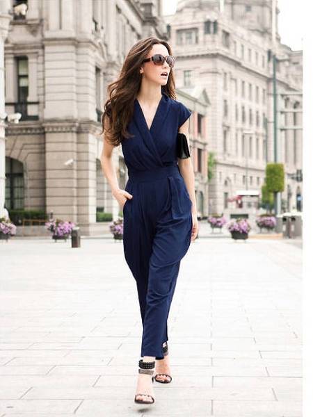 新品 青 XL オールインワン サルエル パンツドレス サロペット n0106 レディース 即納 ブルー ネイビー 紺