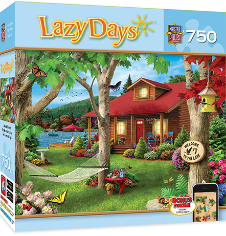 MAS 31574●750ピース ジグソーパズル 米国輸入●田舎暮らし レイクサイドリゾート ハンモック コテージ、庭、湖の景色 Alan Giana