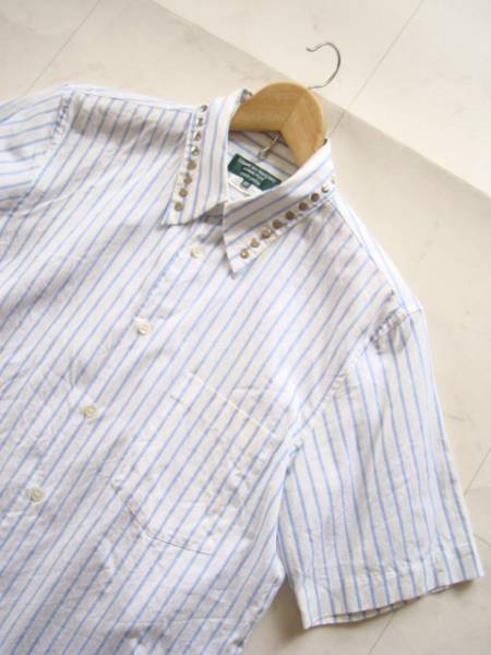 ・風合いの良い生地を使い計算された美しいシルエット、バランスの良さに襟元のスタッズ使いがとてもお洒落な半袖シャツになります♪