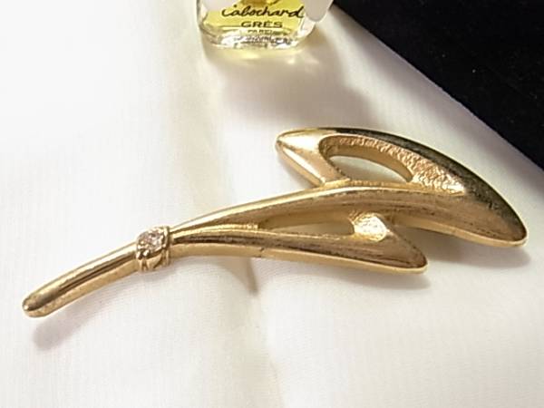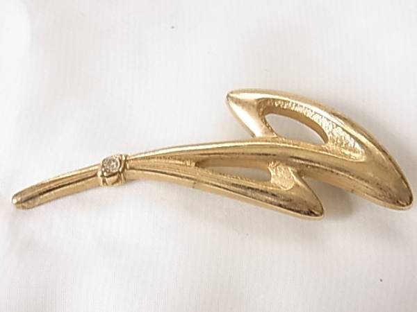 1粒のラインストーンが輝くつや消し個性的デザインのブローチ◎++