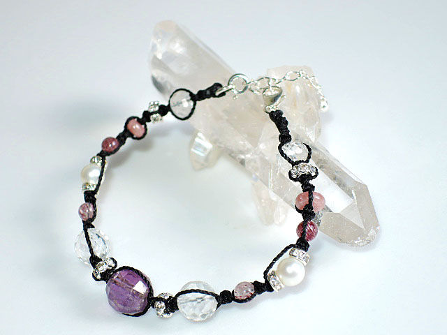 ★アメジストと宝石達★天然石紫水晶★ハンドメイドブレスレットシルバー925 kamesan