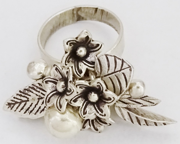 ◆カレン族シルバーリング じゃらリング 花◆約18号◆カレンシルバー【09nr08】 |