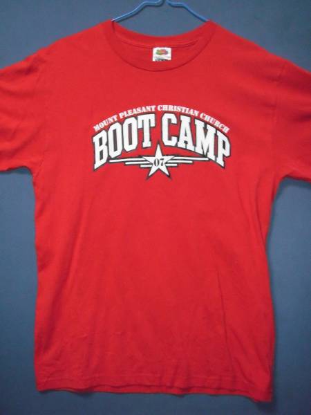 ⑤ USA古着 サイズM 前後ロゴ BOOT CAMP 赤色半袖Tシャツ