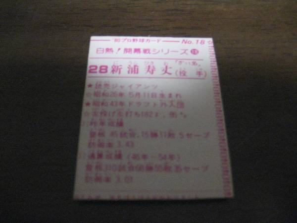 | ■カルビー1980年/No18/白熱!開幕戦シリーズ/新浦寿丈/巨人 | ||