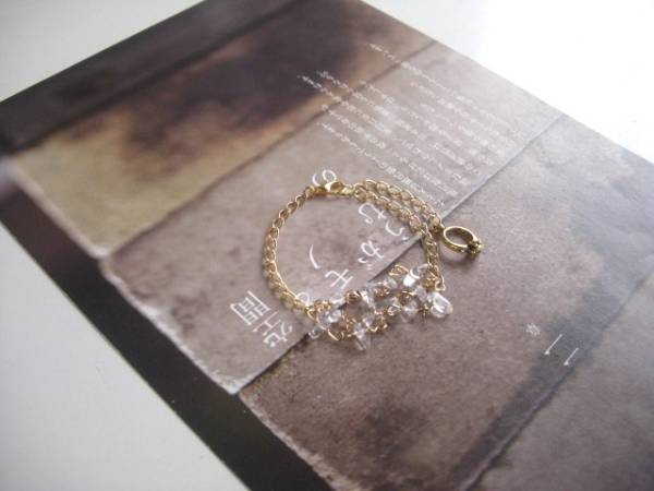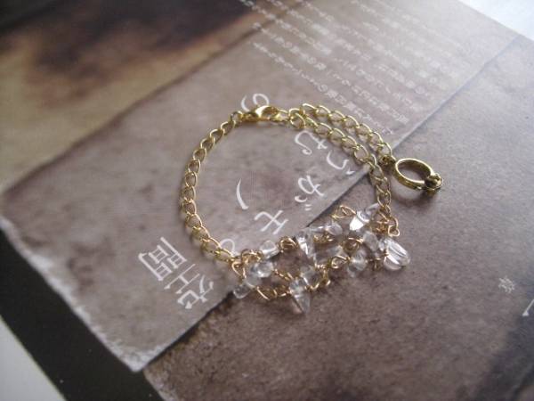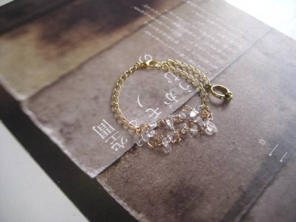 特別な一日・・シリーズです♪妖精の涙・・繊細な水晶のブレスレットです♪♪水晶のさざれを3連に紡いで可憐にロマン チックしていま す♪水晶は4ミリから7ミリ位までのさざれです♪長さは全長22センチ位です♪お揃いのネックレスやリングも出品しています♪シ ンプルで長く着けられるデザインを考えて作りました♪ハンドメイドをご理解頂いてノークレーム、ノーリターンでお願いします♪