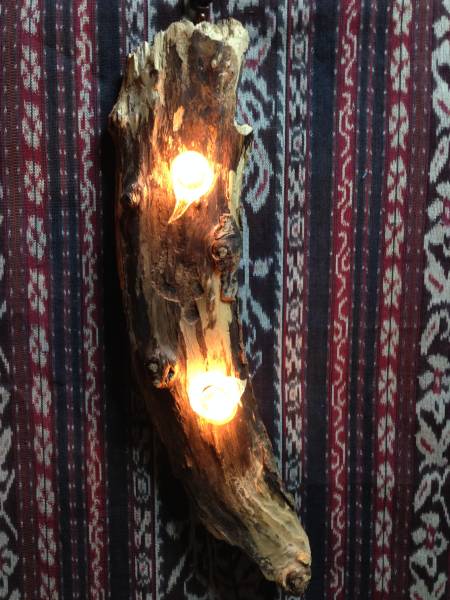 ナチュラルアート工房SunKaraの商品をご覧いただきありがとうございます。 長い時間をかけて浜にたどり着いた、 流木の造形、質感、色をそのまま生かして製作したランプです。 ウォールランプとして、お部屋のアクセントに、、 または、お気に入りの雑貨やアクセサリーと一緒にテーブルの上に置いても素敵です。 間接照明としてはもちろん、昼間、点灯していない時でもインテリアとして、流木の独特のぬくもりある空間を演出するお部屋やお店の雰囲気作りにぴったりな流木ランプです。 サイズ; 約46cm×約12cm コード;約170cm ソケットサイズ; 口金E12(10wまで使用可) 使用電球;5w×2 ※写真に写っている貝、植物、その他雑貨は付属しません。 | |||