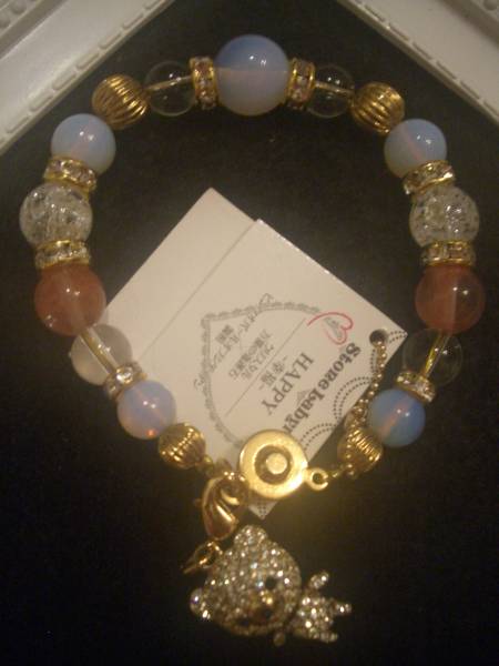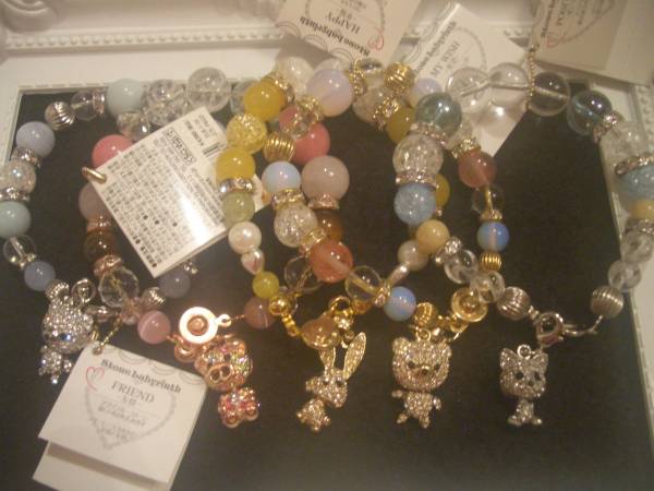 こちらは全て未使用新品♪ STONE LABYRINTHの商品です!! ラインストーンがふんだんに散りばめられたキラキラチャームがポイントのキュートなブレスレットです♪ 可愛いキラッキラのくまちゃんチャームは取り外しができるので、お気に入りのポーチにつけたり、手持ちのアクセサリーにつけて、自分なりのお洒落を楽しんでください♪ テーマは幸福、ピンクオパールオブシディアン(調和)×クリスタル(最強の万能石)の組み合わせです(#^.^#) ◆商品詳細 内径サイズ(腕周り):約15cm前後 ※商品には伸縮性のあるゴムを使用しております。 ※天然石を使用しておりますので、サイズが若干前後する場合がございますので予めご了承下さい。 可愛い巾着袋に入れて発送させていただきます♪♪ 定価は4980円☆ 気に入ってくださった方、格安ですので神経質でない方、NCNRで御了承いただける方のみ、どうぞ宜しくお願いします♪ 他にもラビリンスのブレス(2枚目画像)など可愛い商品を沢~山出品しておりますので是非ご覧下さい(^_-)-☆ 同梱は大歓迎です♪ 必ず自己紹介をご覧くださいませ♪