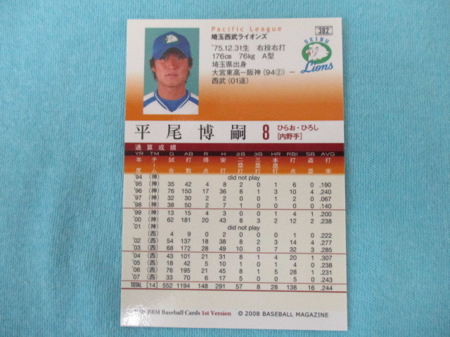 ★BBM 2008★1st Version〔382 平尾博嗣 埼玉西武ライオンズ〕トレカ♪