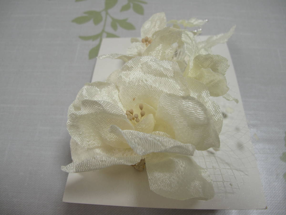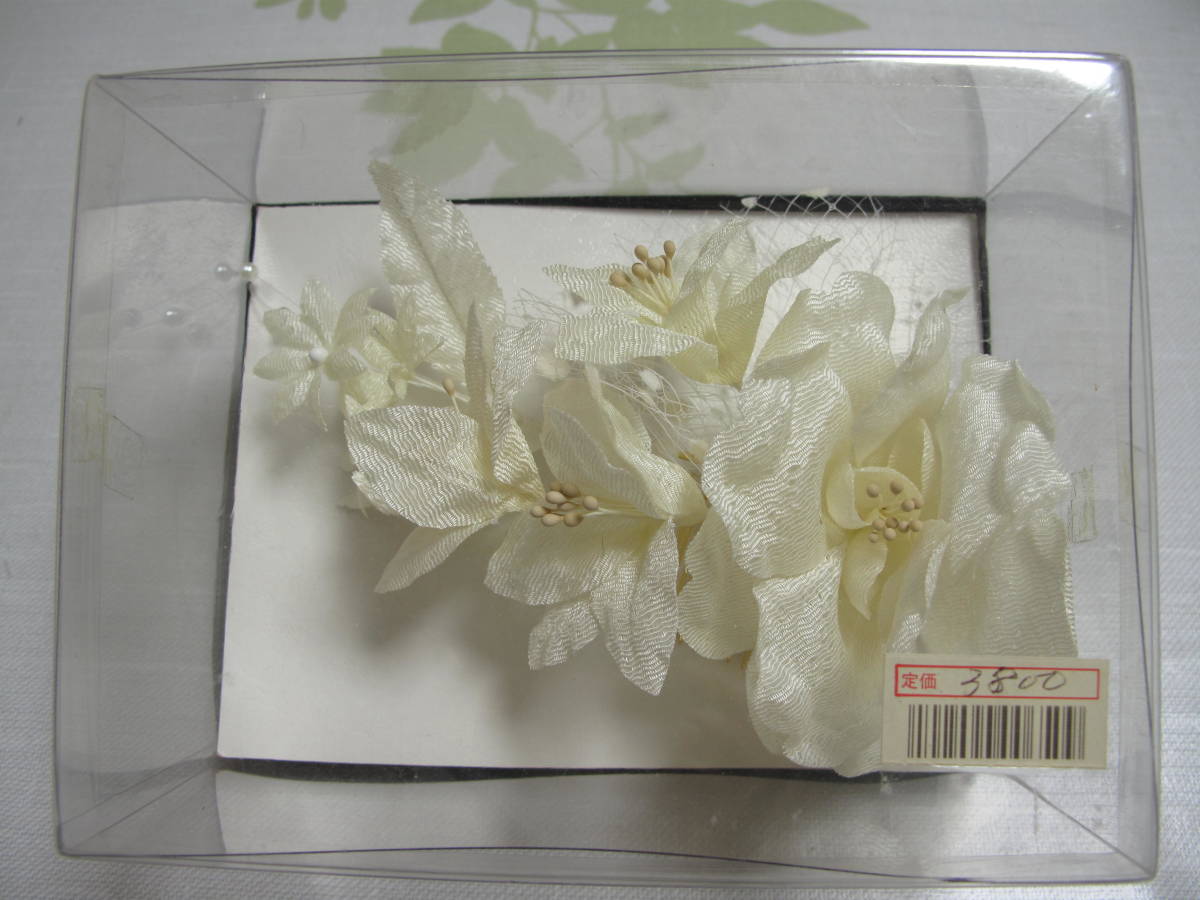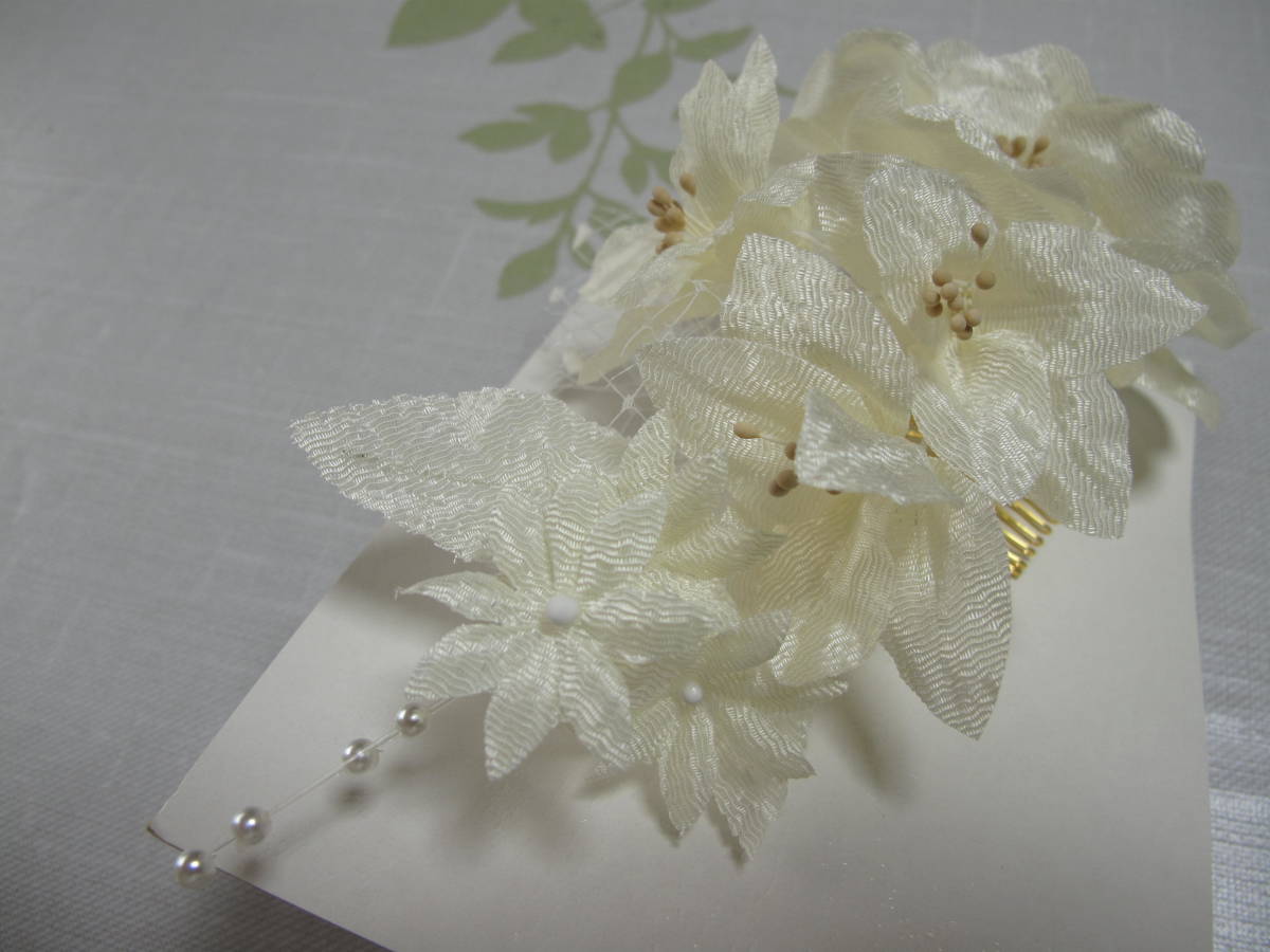 新品 髪飾り コーム 和装 洋装 花 ケース入り アイボリー チュール パール調