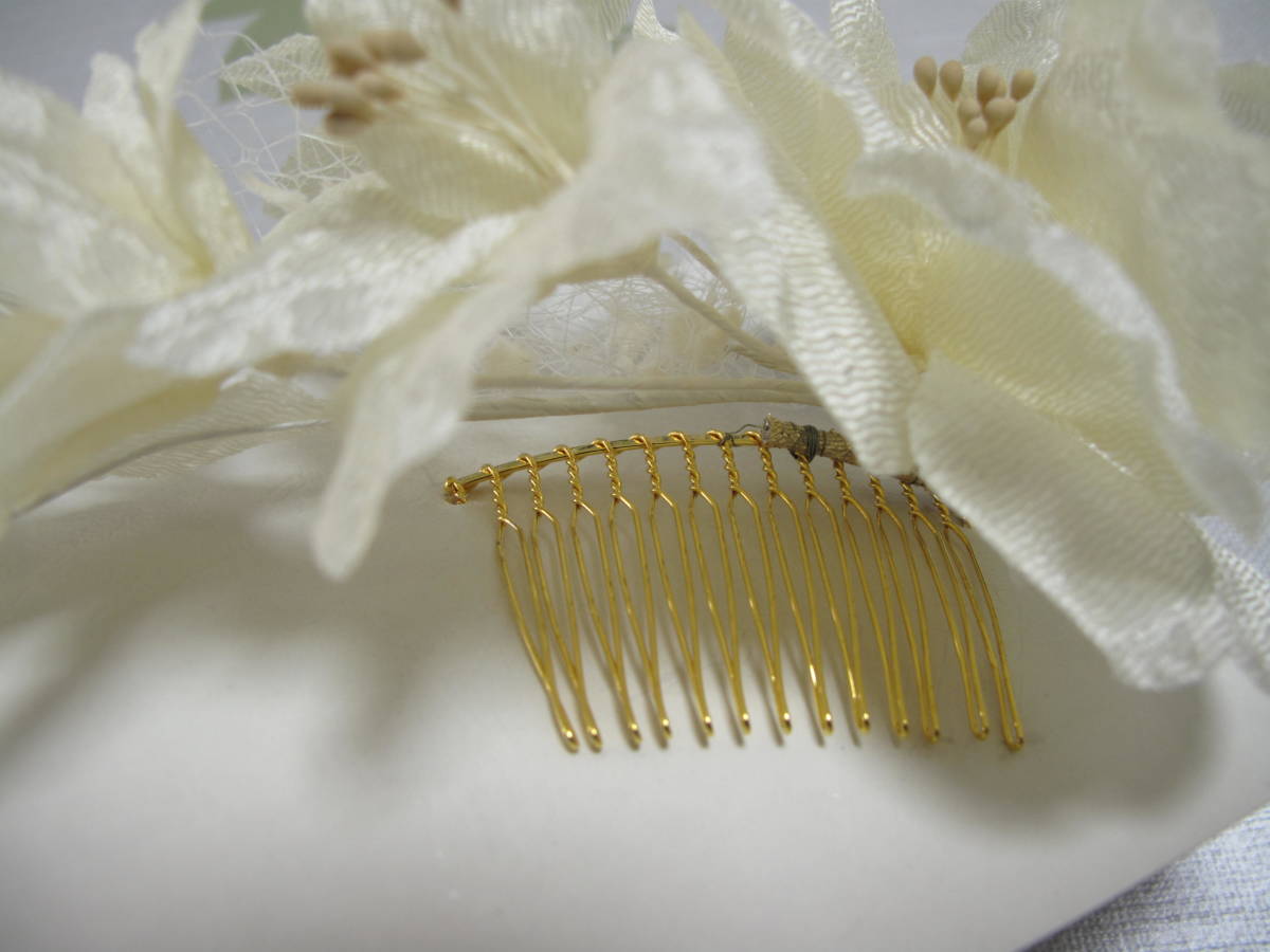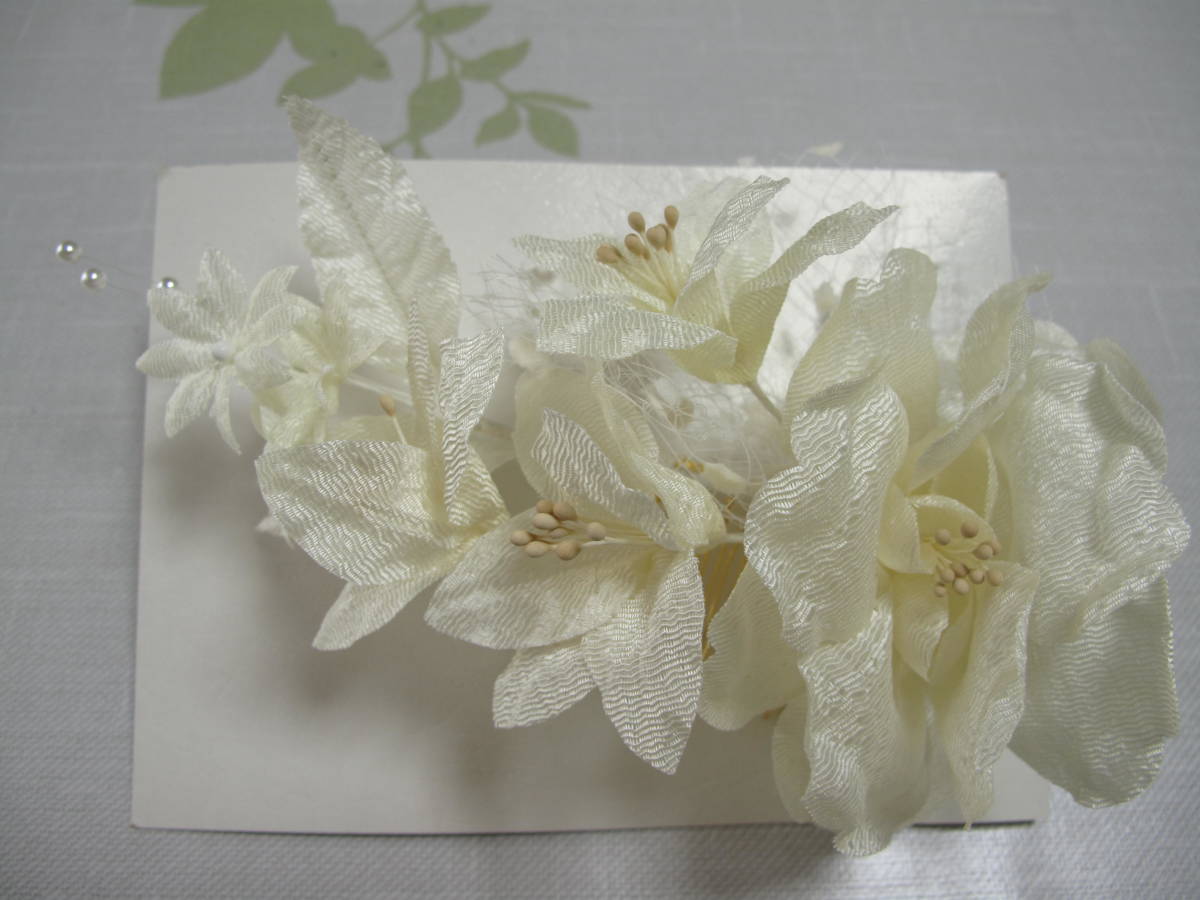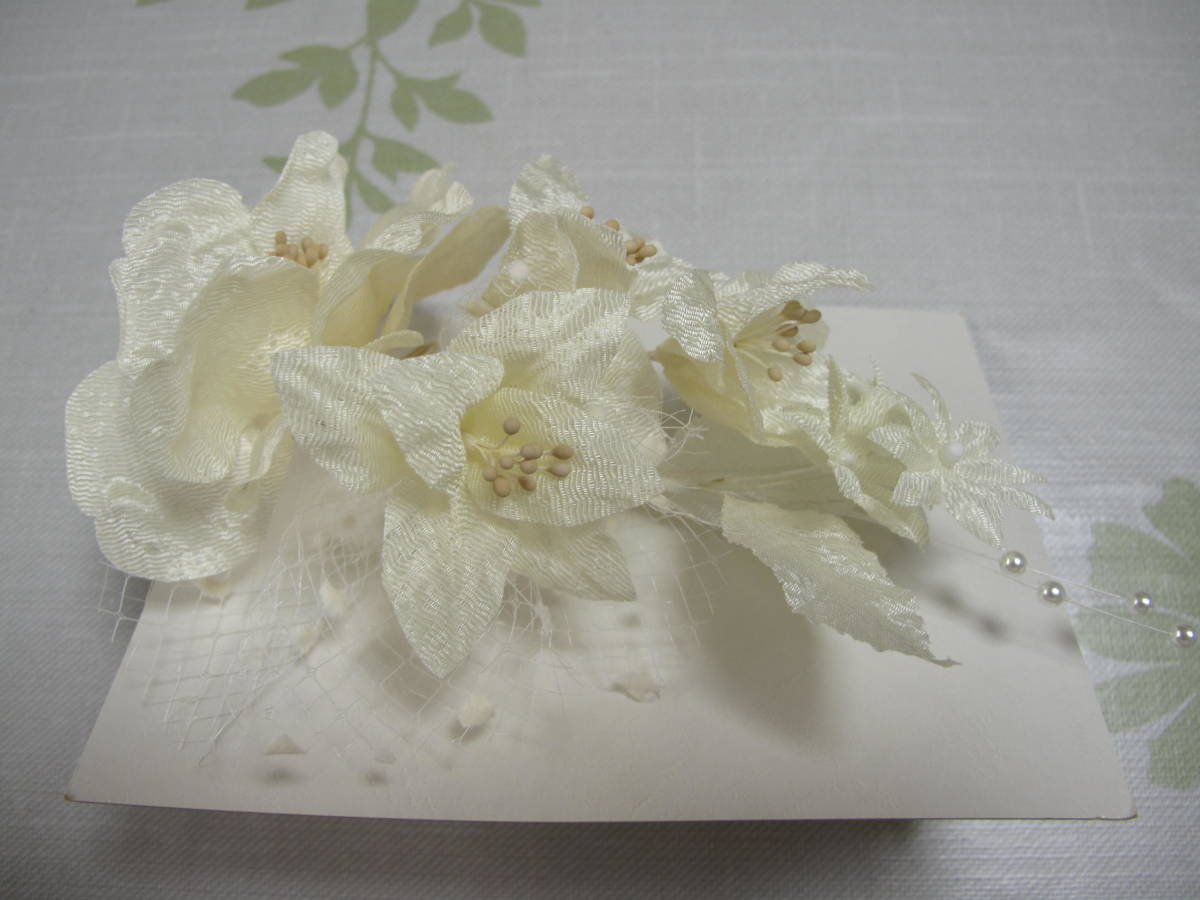 新品 髪飾り コーム 和装 洋装 花 ケース入り アイボリー チュール パール調