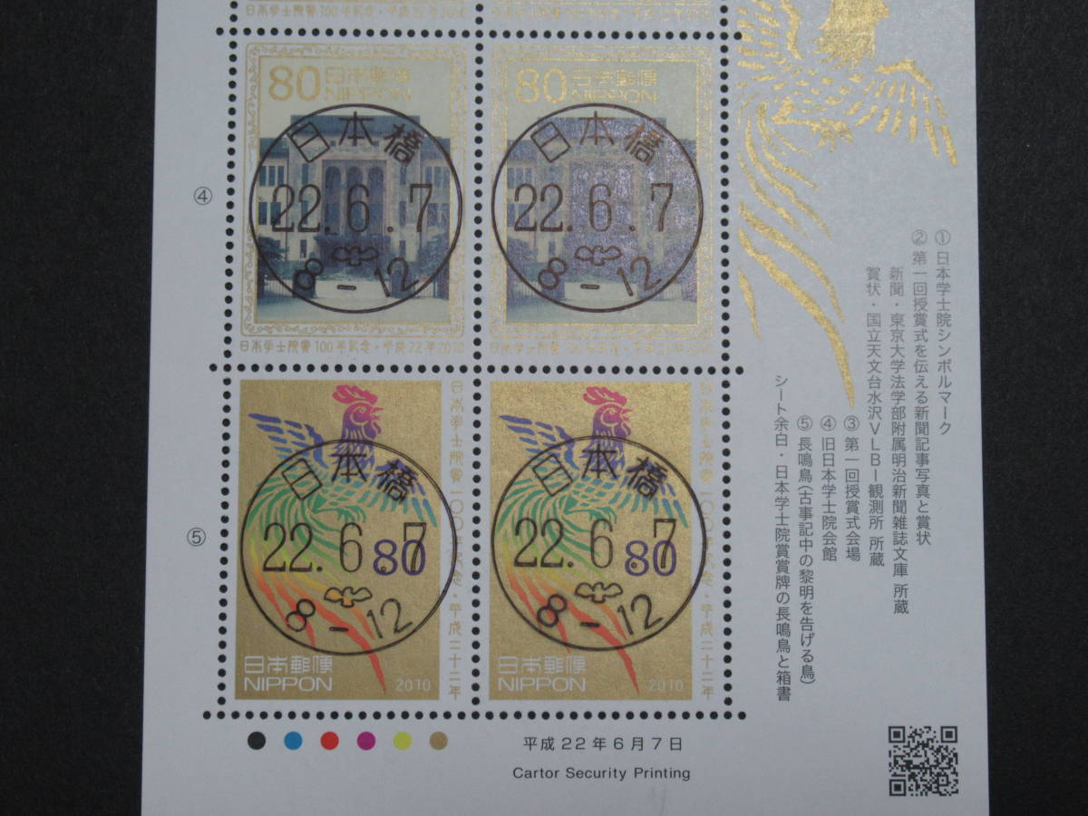 《H22年発行・初日満月印》 最終出品・日本学士院賞100年日満月印 《カタログ価》