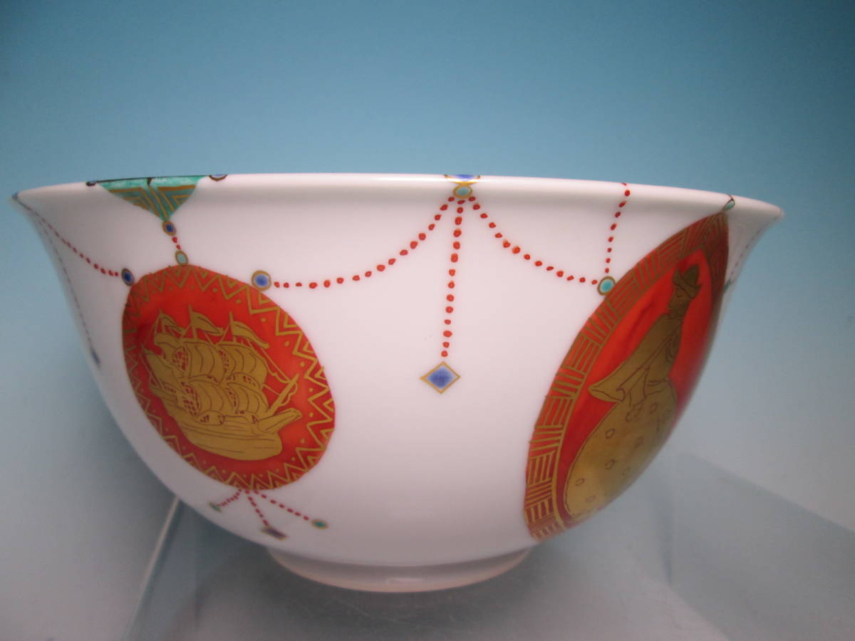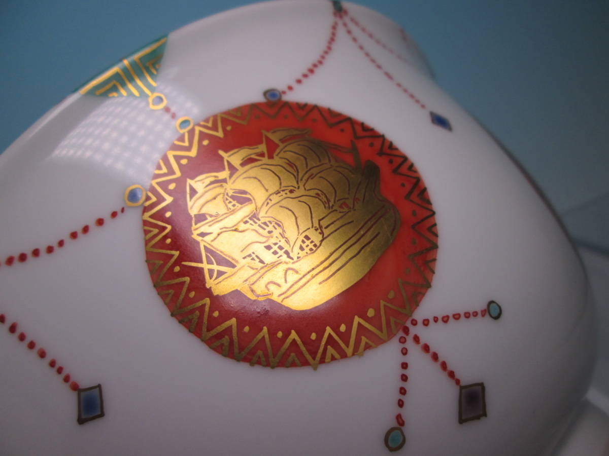 金彩に赤、ブルー、グリーンの美しい絵付けです。