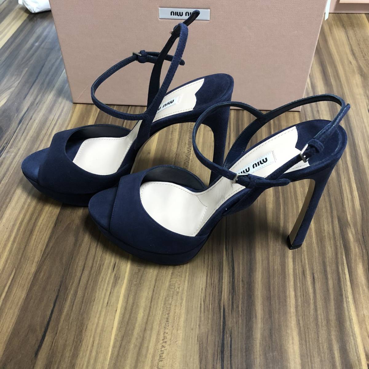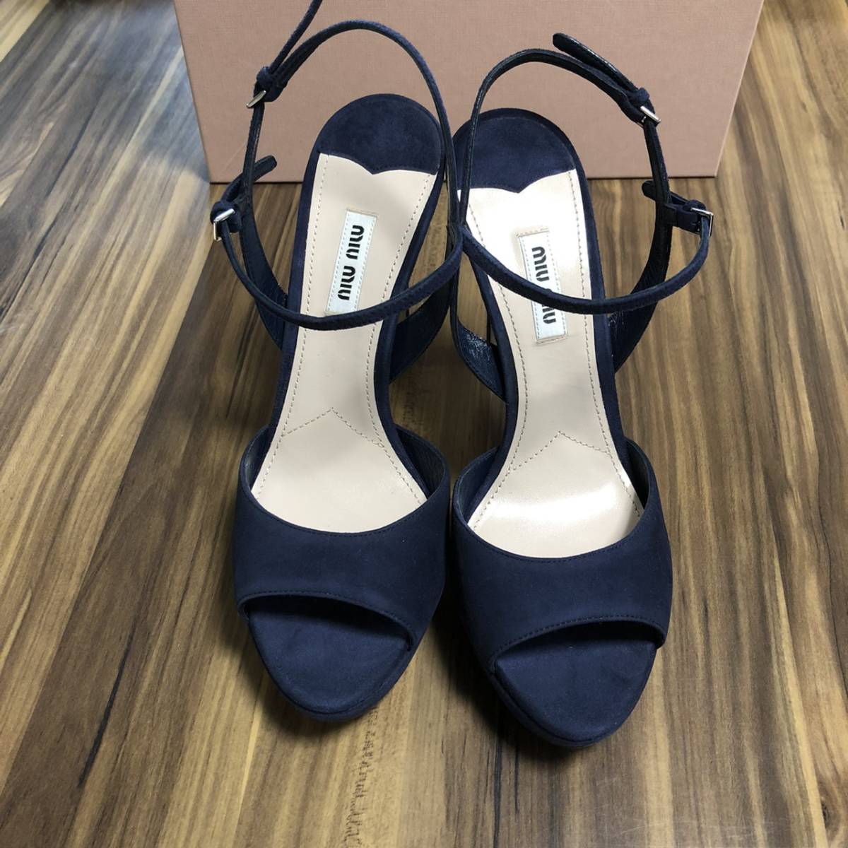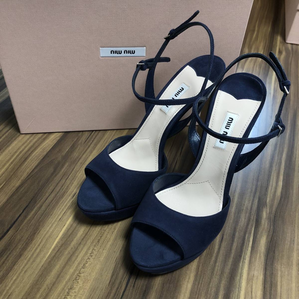 新品★MIU MIU ミュウミュウ レディース サンダル 25㎝ 上品なネイビー 夏のお出かけに♪