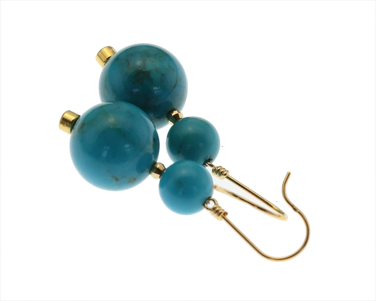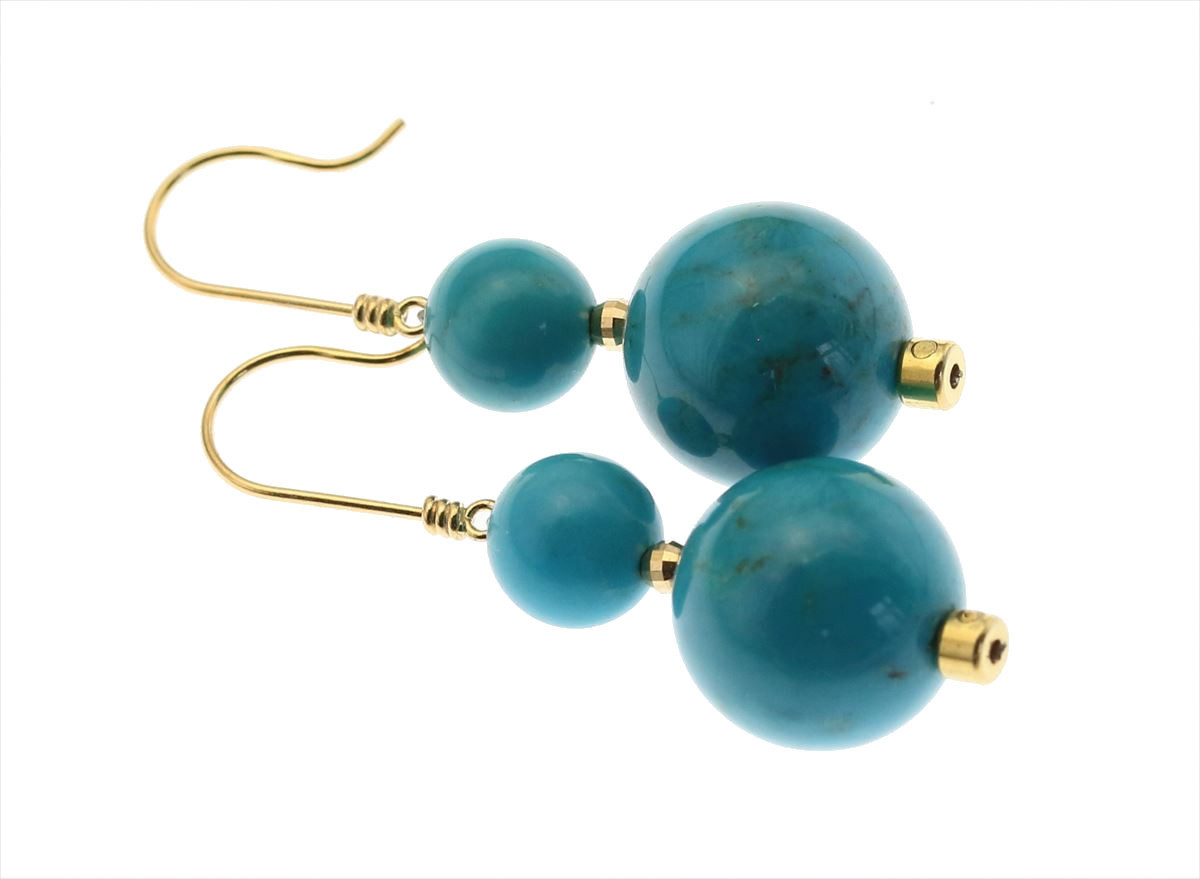 鮮やかで美しい発色の天然のターコイズ10mmと6mm珠を雪だるまに見立てて、