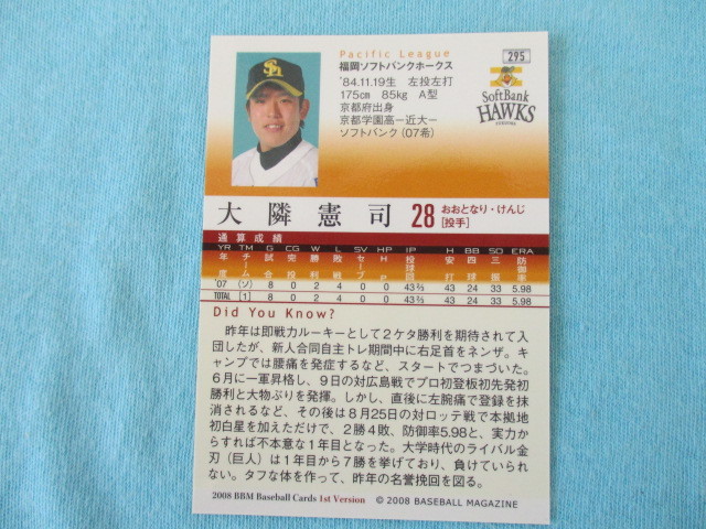 ★BBM 2008★1st Version〔295 大隣憲司 千葉ロッテマリーンズ〕トレカ♪