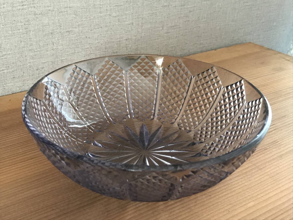 大正~昭和初期レトロ プレスガラス 鉢皿 深皿 サラダ皿 薄紫色