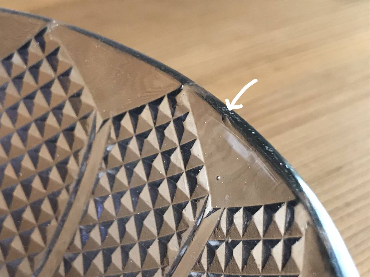 写真では分かりにくいかもしれませんが、うっすらとした紫色のガラスで、カットの