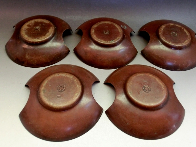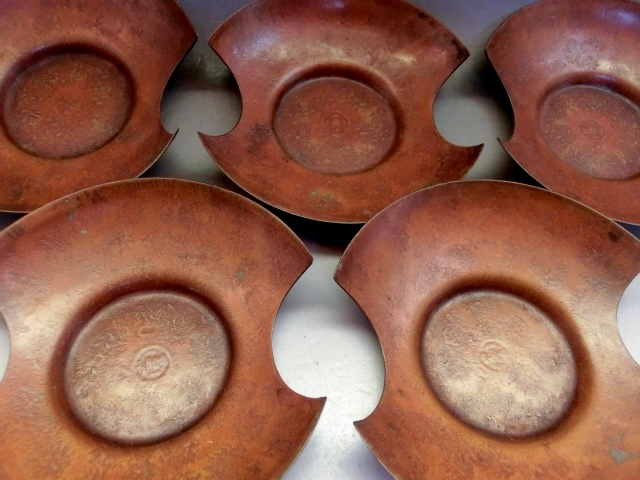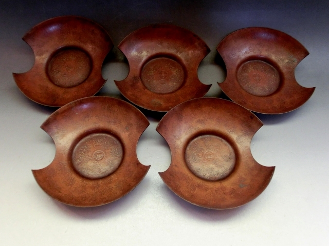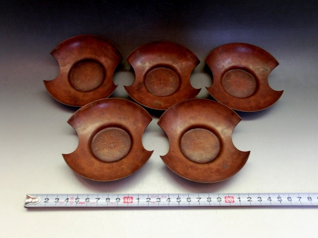 茶托■黄銅托子 大阪尚美堂造 5客 茶たく 銅製 煎茶器 お茶道具 古美術 時代物 骨董品■