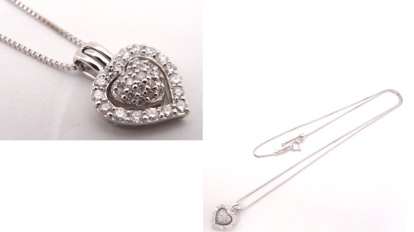 詳細・備考 | ■合計0.50ctのダイヤモンドがセッティングされたペンダントネックレスが入荷いたしました。高級感のあるデザインとなっております。 プレゼントや自分へのご褒美にもいかがでしょうか。 ■使用に伴う小傷は見られますが、おおむねきれいなコンディションです。 |